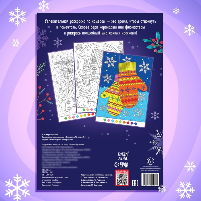 Раскраска по номерам «Зимняя», 16 стр., А4 — Характеристики