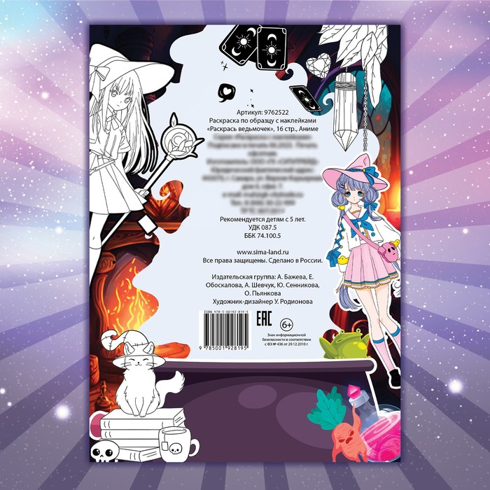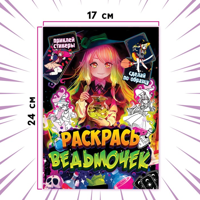 Раскраска по образцу с наклейками «Раскрась ведьмочек», 16 стр., Аниме — Характеристики