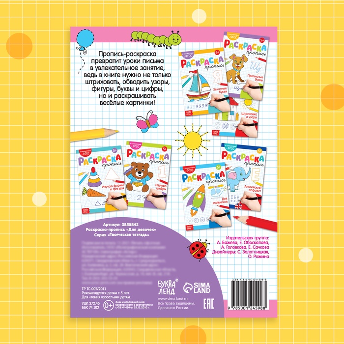 Раскраска пропись «Для девочек», 20 стр. — Характеристики