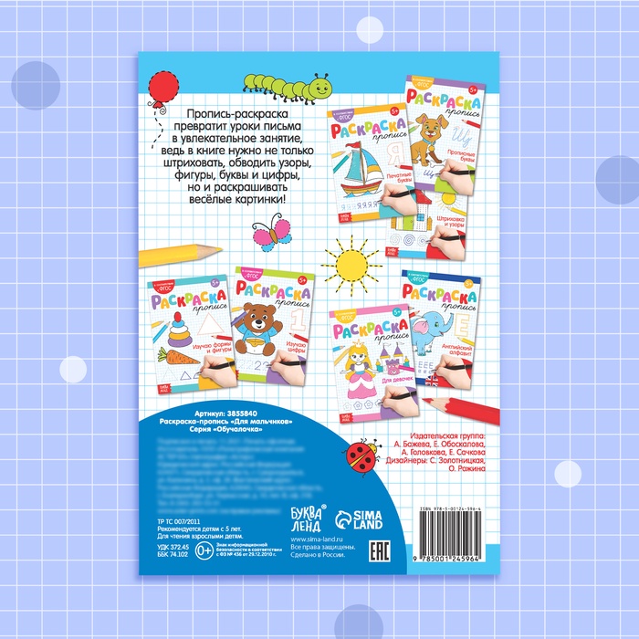 Раскраска пропись «Для мальчиков», 20 стр. — Характеристики
