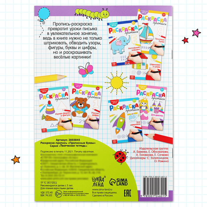 Раскраска пропись «Прописные буквы», 20 стр. — Характеристики