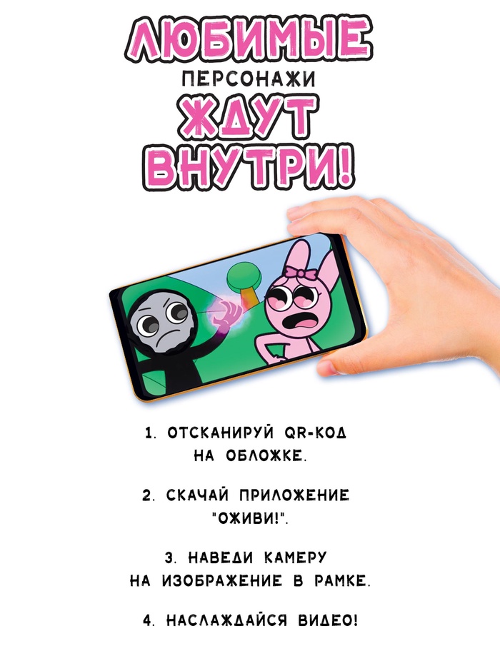• Дополненная реальность оживляет рисунки через специальное приложение, доступное по QR-коду на обложке.