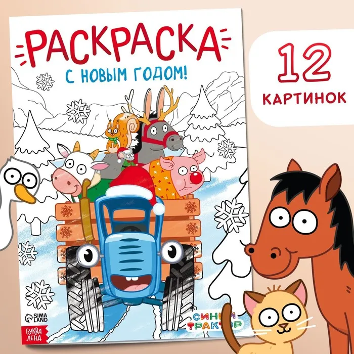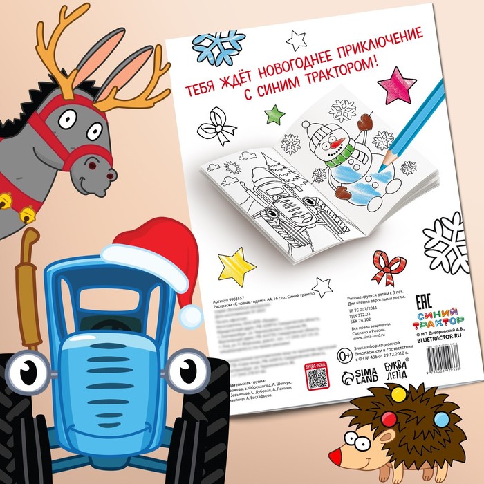 Раскраска «С новым годом!», А4, 16 стр., Синий трактор — Характеристики