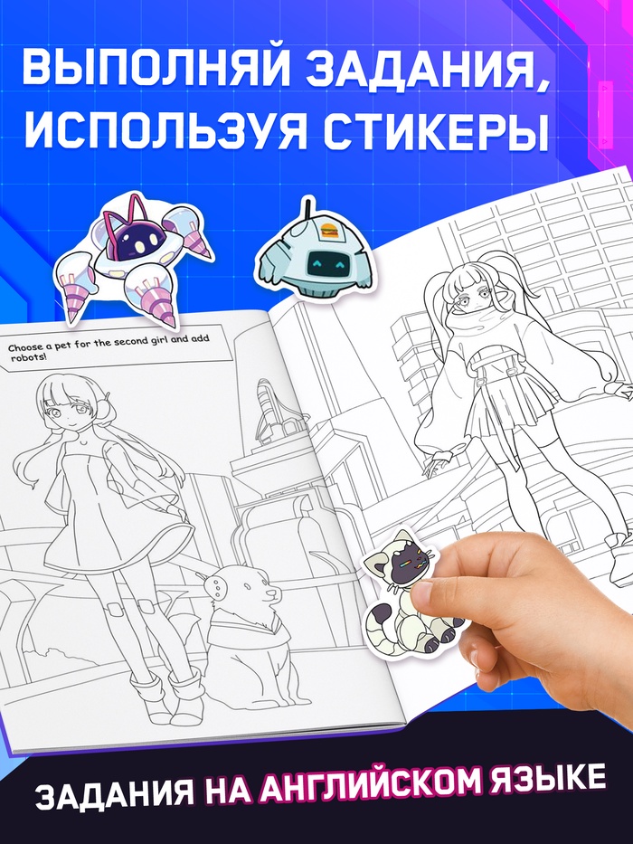 Раскрашивание картинок и выполнение заданий помогают погрузиться в мир аниме, одновременно осваивая английский язык. Каждая страница предлагает не просто раскрасить изображение, но и решить интересные задачи, которые стимулируют мышление и воображение. Наклейки становятся дополнительным источником творчества, позволяя создавать уникальные проекты или украшать личные вещи. Совместные занятия с друзьями или семьёй превращают процесс в увлекательное приключение.