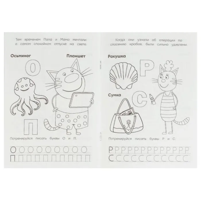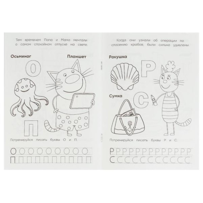 Раскраска «Три кота и море приключений», с азбукой и прописями — Характеристики
