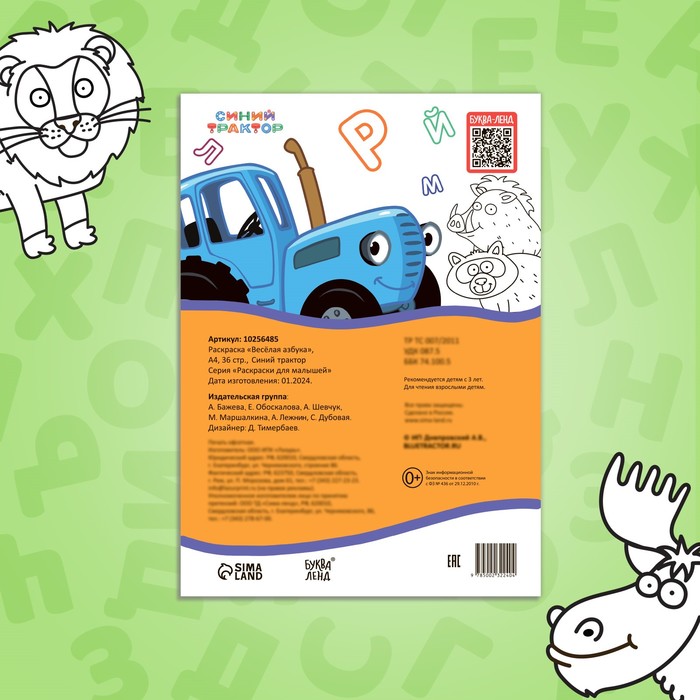 Раскраска «Весёлая азбука» с Синим трактором — это увлекательный способ познакомить ребёнка с буквами и миром техники. 36 страниц формата А4 предлагают яркие рисунки с изображениями любимых персонажей мультфильмов и транспорта. Мягкая обложка делает книгу удобной для использования дома, в детском саду или на прогулке.