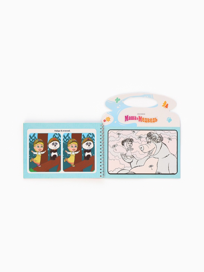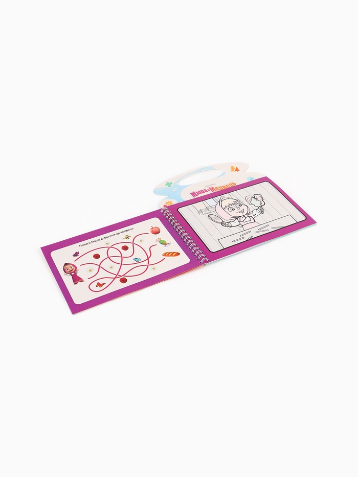 - Многоразовые страницы с яркими изображениями персонажей мультфильма «Маша и Медведь».