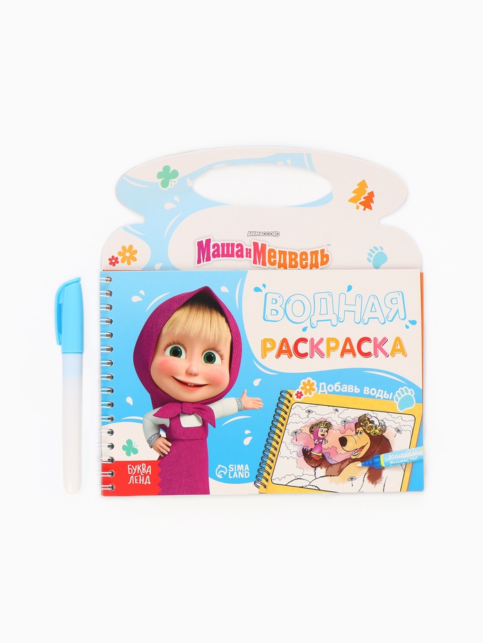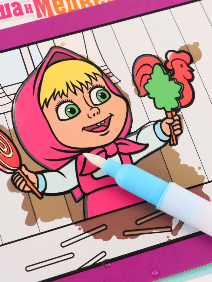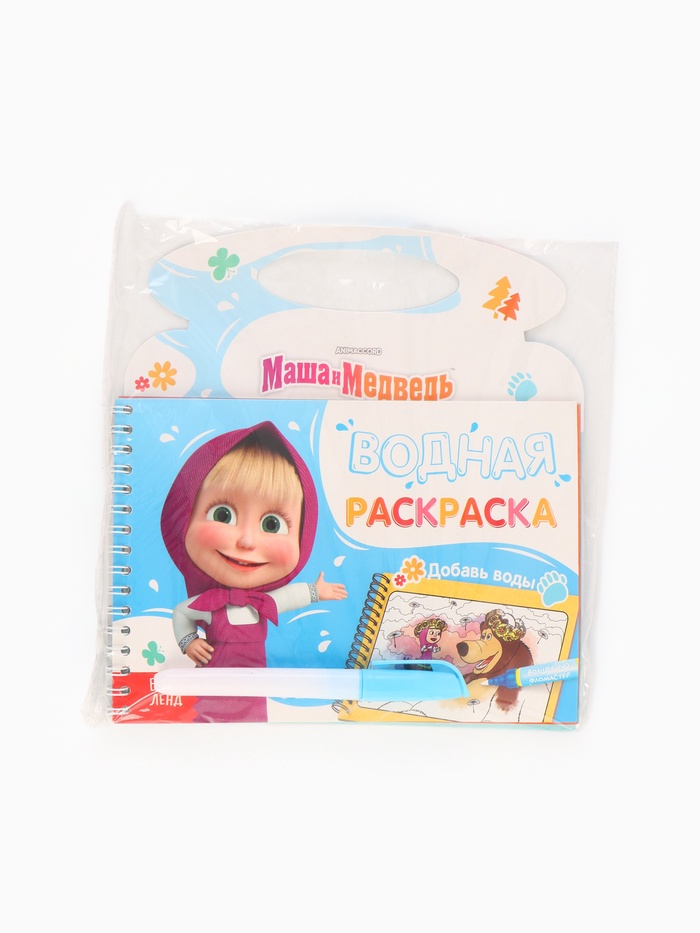 Раскраска водная «Добавь воды», с маркером, многоразовая, Маша и Медведь — Характеристики