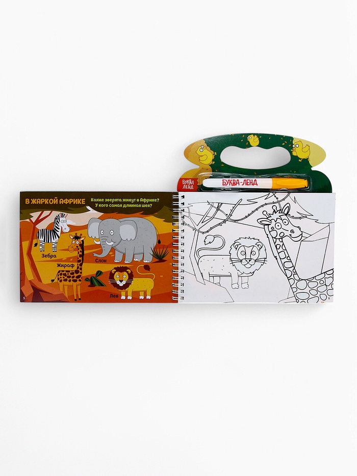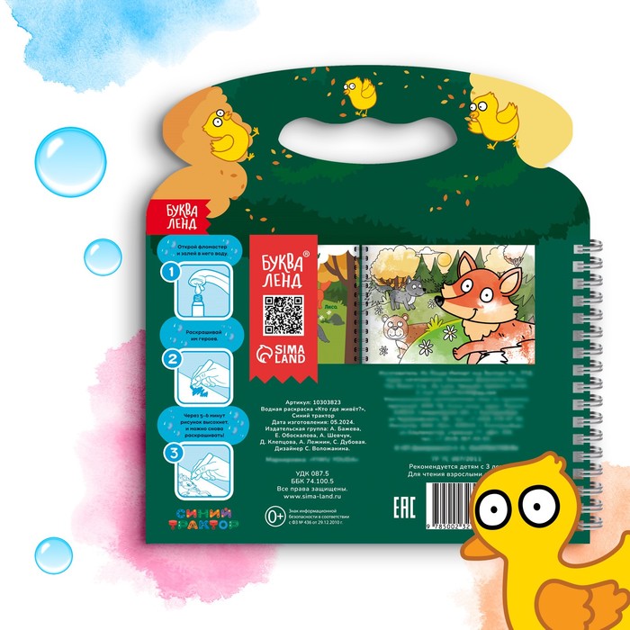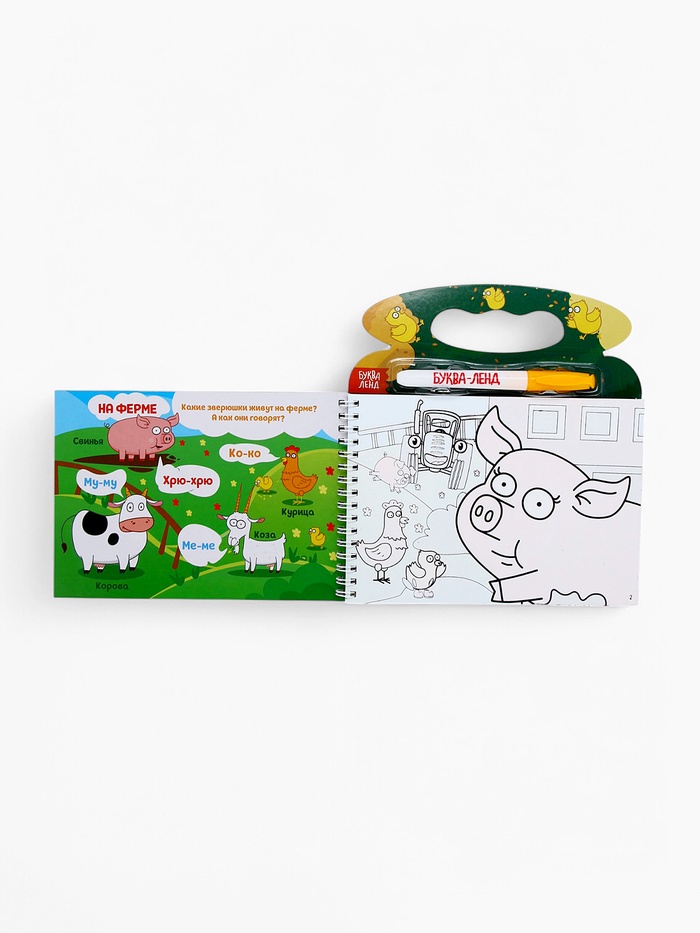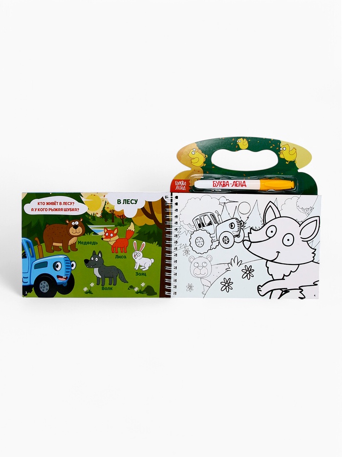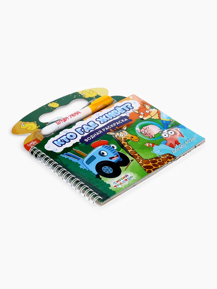 Многоразовая раскраска «Рисуем водой. Кто где живёт?» с Синим трактором — это увлекательное занятие для детей от 3 лет, где любимые персонажи оживают под воздействием воды. В комплект входит специальный фломастер, который заправляется водой, и 8 страниц с изображениями синим трактором и его друзей. Интегральный переплёт на пружинке делает книгу удобной для использования дома или в дороге.