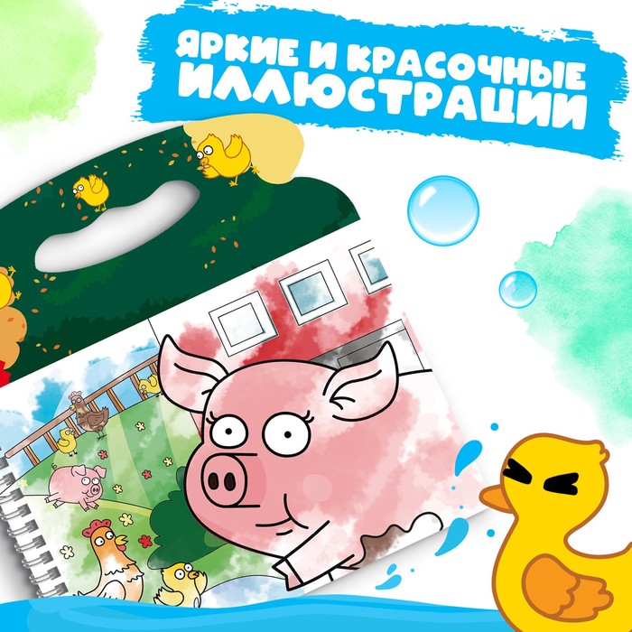 Раскраска водная «Кто где живёт?», с маркером, многоразовая, Синий трактор — Характеристики