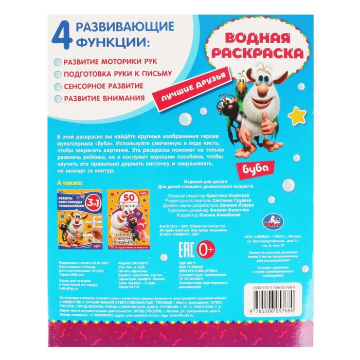 Раскраска водная «Лучшие друзья», Буба, 8 картинок — Характеристики