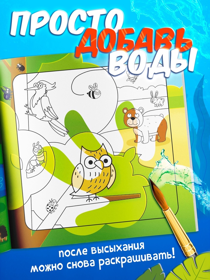 Просто смочите кисточку в воде и проведите по странице — картинка начнёт проявляться, как по волшебству. После высыхания страница снова готова к использованию. Это безопасно, удобно и не требует дополнительных материалов.