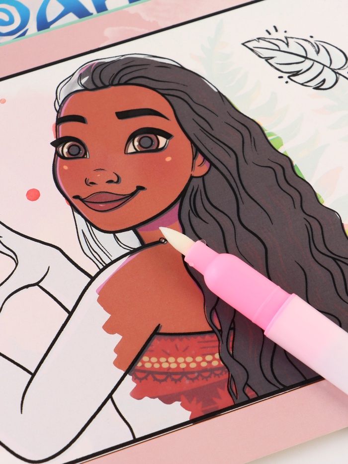 Рисование водой помогает ребёнку развивать мелкую моторику, воображение и внимание к деталям. Каждая страница оживает под воздействием воды, а через несколько минут высыхает, позволяя начать заново. Любимые герои «Моаны» делают процесс ещё более увлекательным. Это напоминает маленький театр, где каждое движение маркера создаёт новую историю.