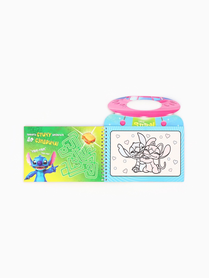 - Многоразовые страницы с яркими изображениями персонажей мультфильма «Стич».