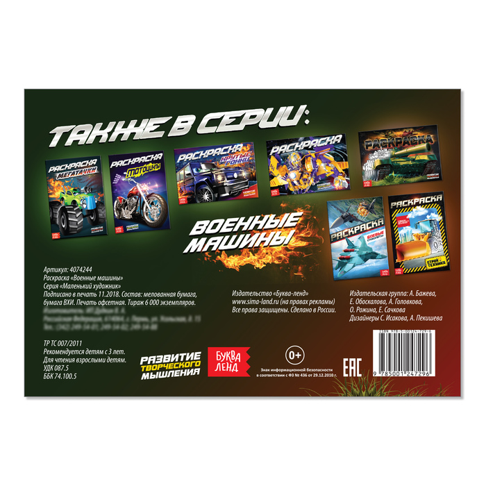Раскраска «Военные машины», А5, 12 стр. — Характеристики
