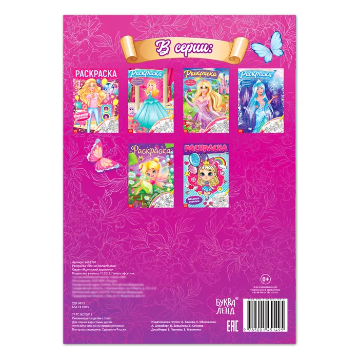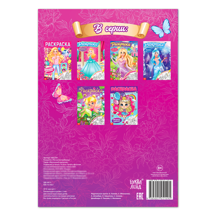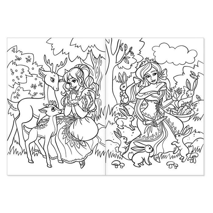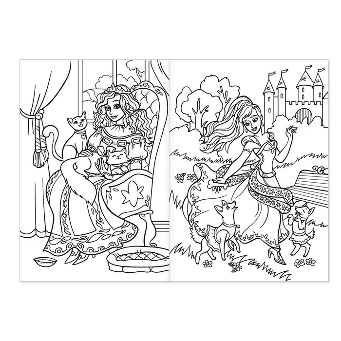 Раскраска «Волшебное королевство» — книга с контурными изображениями принцессы, замка, животных и других обитателей сказочного царства. Малышка сможет их раскрасить карандашами, красками или фломастерами. Страницы и обложка выполнены из бумаги.