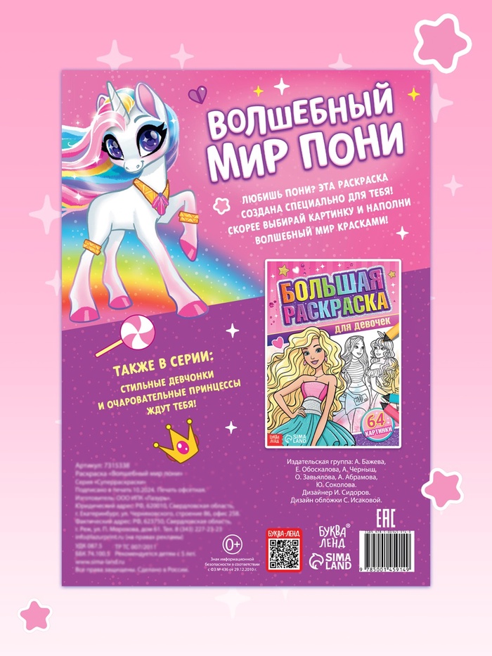 Раскраска «Волшебный мир пони», 68 стр., формат А4 — Характеристики