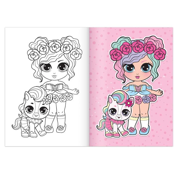 - Внутри ребёнок найдёт 8 образов для раскрашивания.