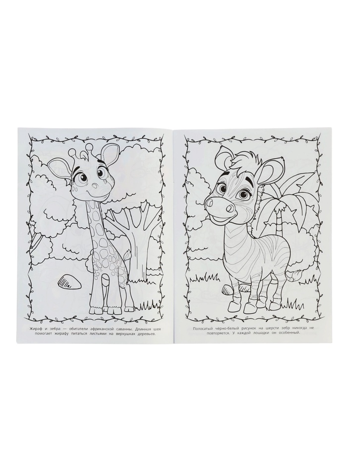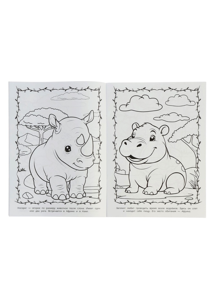 Крупные контуры и понятные образы позволяют даже малышам раскрашивать без стресса. А ещё — рассказывать, где живёт зебра, почему носорог такой серьёзный. Так игра становится первым шагом к знаниям.