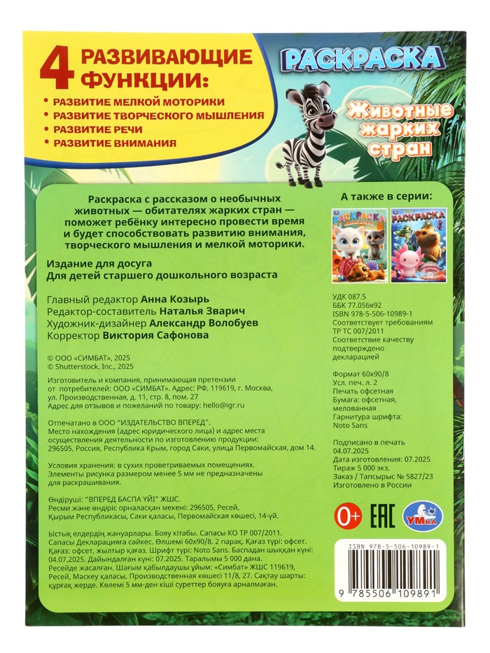Раскраска «Животные жарких стран», 16 стр. — Характеристики