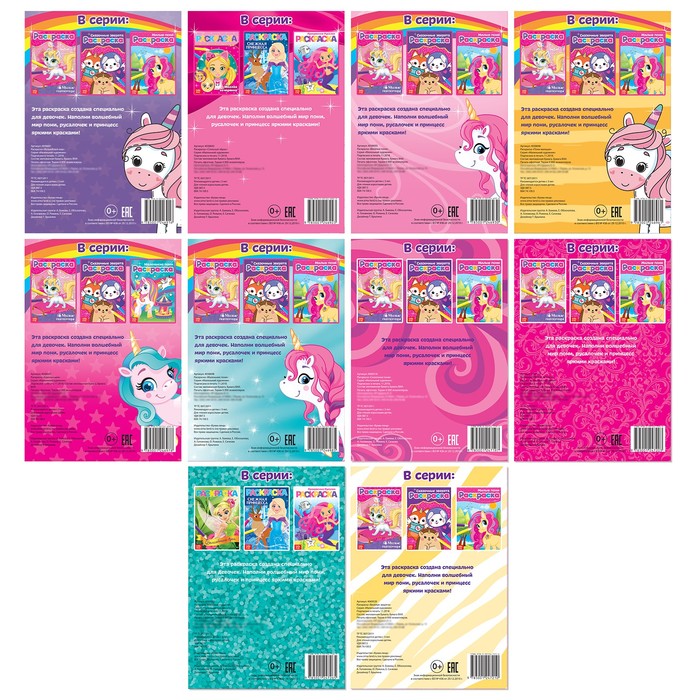 Раскраски А5 для девочек, набор, 10 шт. по 12 стр. — Характеристики