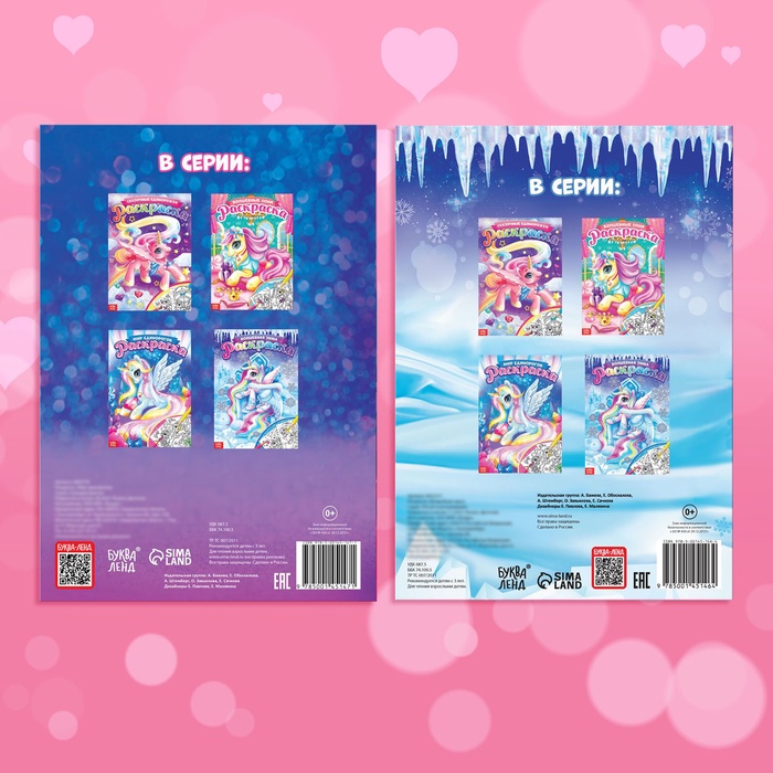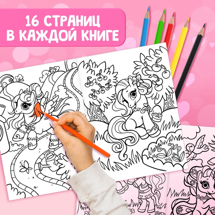 Раскраски для девочек набор «Пони», с карандашами 6 цветов, 2 шт. по 16 стр. — Характеристики