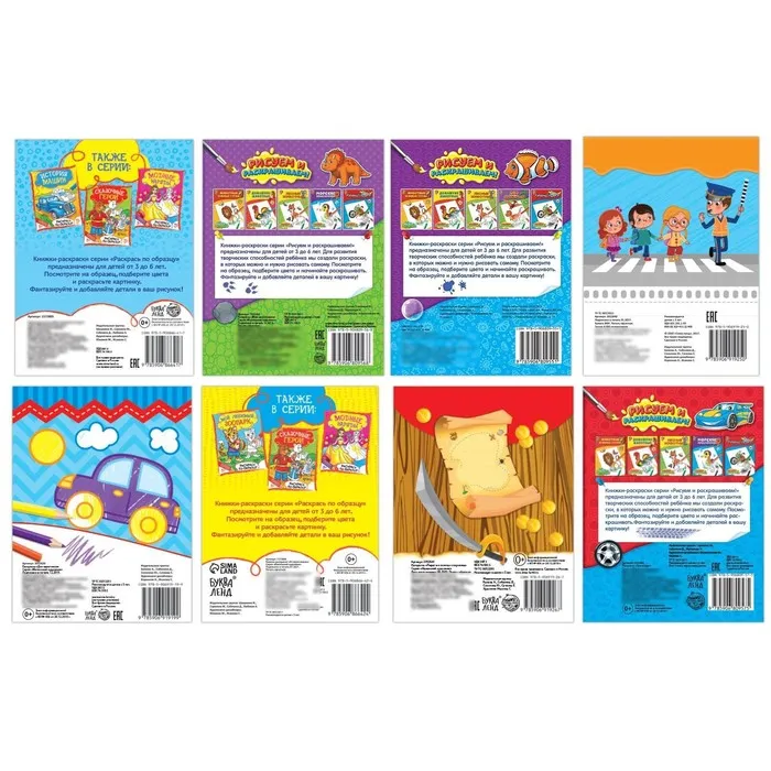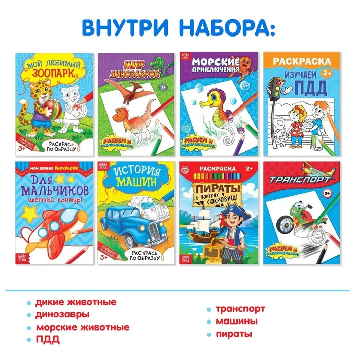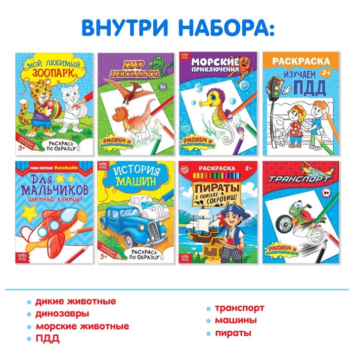 Раскраски «Для мальчиков», набор 8 шт. по 12 стр. — Характеристики