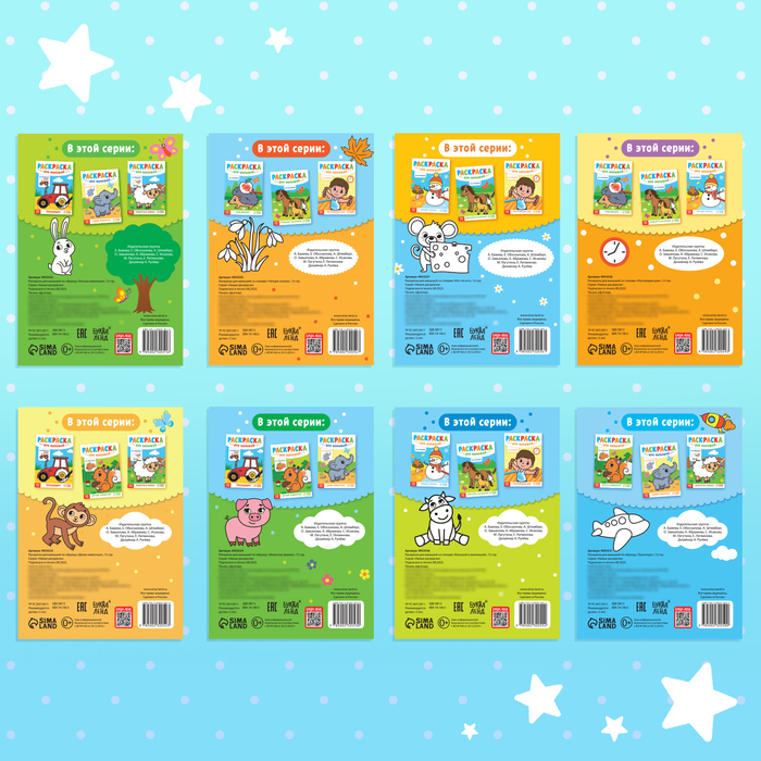 Набор раскрасок в формате А5 удобно хранить дома или брать с собой в поездки. Они станут отличным помощником для родителей, чтобы занять ребёнка в пути или в ожидании. Компактные книжки легко помещаются в рюкзак или сумку.