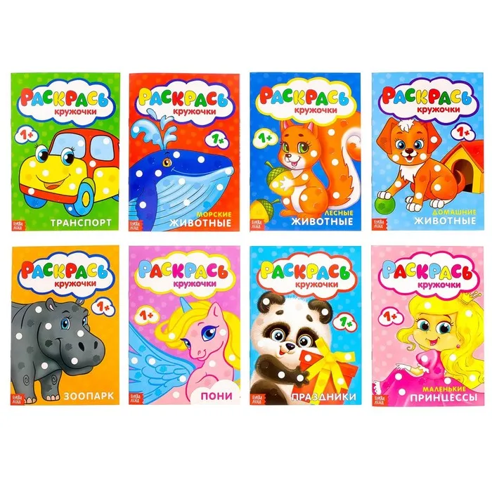 Раскраски для малышей пальчиковые, набор, 8 шт. по 16 стр. — Характеристики