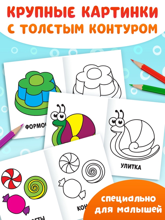 - Картинки достаточно крупные, поэтому их удобно будет раскрашивать даже двухгодовалому малышу.