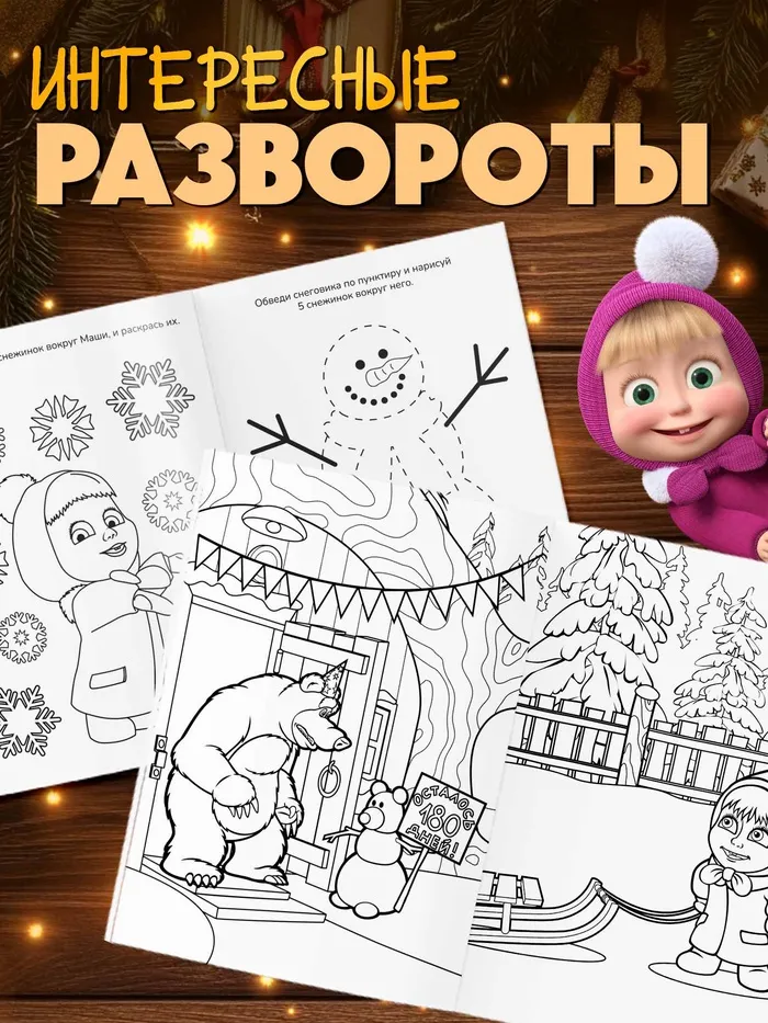 Набор новогодних раскрасок «Зимние истории» Маша и медведь — это четыре красочные книги, которые подарят детям праздничное настроение и увлекут их в мир творчества. Яркие изображения с любимыми мультяшными героями и техникой помогут малышам создать свои собственные зимние шедевры.