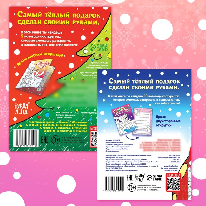 Раскраски - открытки новогодние «Новый год! », набор 2 шт., 15 открыток — Характеристики