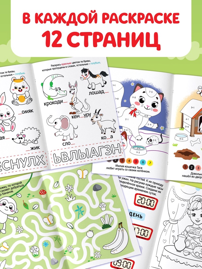 Раскраски «Весёлые задания», набор 8 шт. по 12 стр. — Характеристики