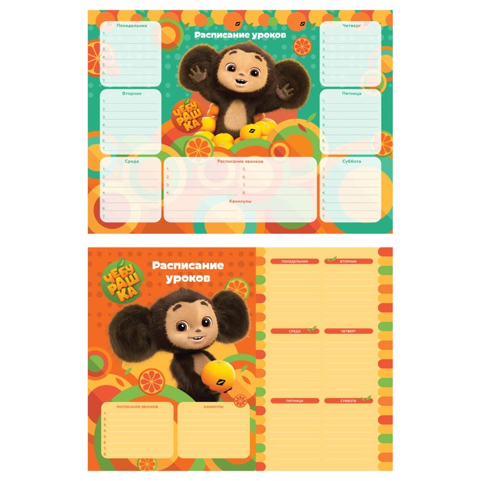 Расписание уроков «Мульти-Пульти» серии «Чебурашка» поможет школьнику придерживаться распорядка дня, рационально распределять нагрузку. Изделие формата А4 (210*290 мм) сделано из мелованного картона плотностью 190 г/м2. Расписание рассчитано на шестидневную учебную неделю. С его помощью удобно контролировать выполнение домашних заданий, планировать посещение дополнительных кружков и секций. Расписание содержит дополнительные блоки с расписанием звонков и каникул
