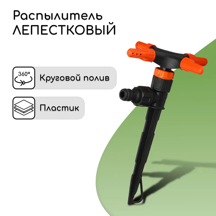 Распылитель 3-лепестковый, 28 см, штуцер под шланги 1/2", 5/8", 3/4", пика, пластик, Greengo — Характеристики