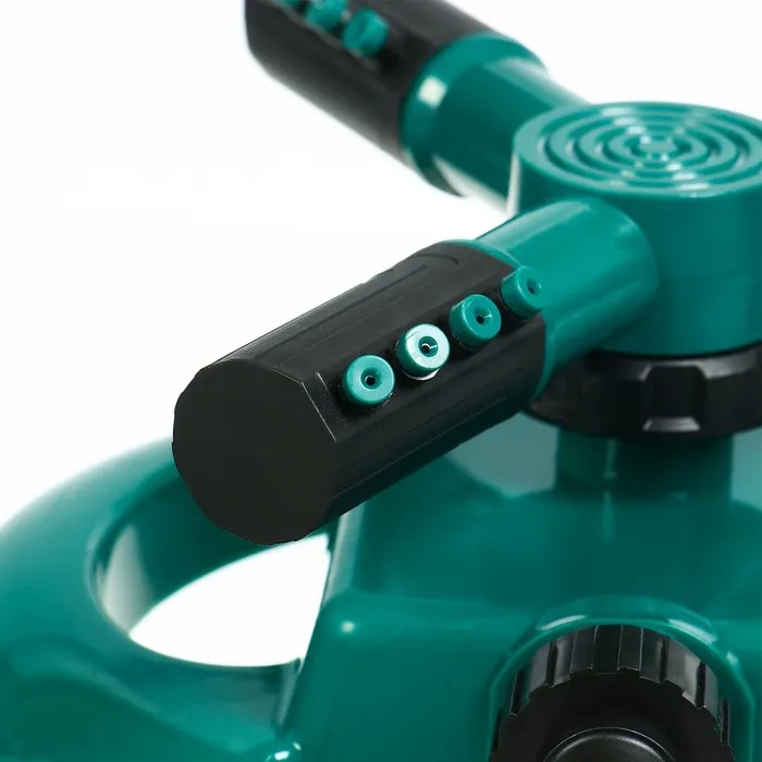 Под давлением воды распыляющая головка начинает вращаться. Конструкцией предусмотрена опорная площадка, которая обеспечивает ему достаточный уровень устойчивости.