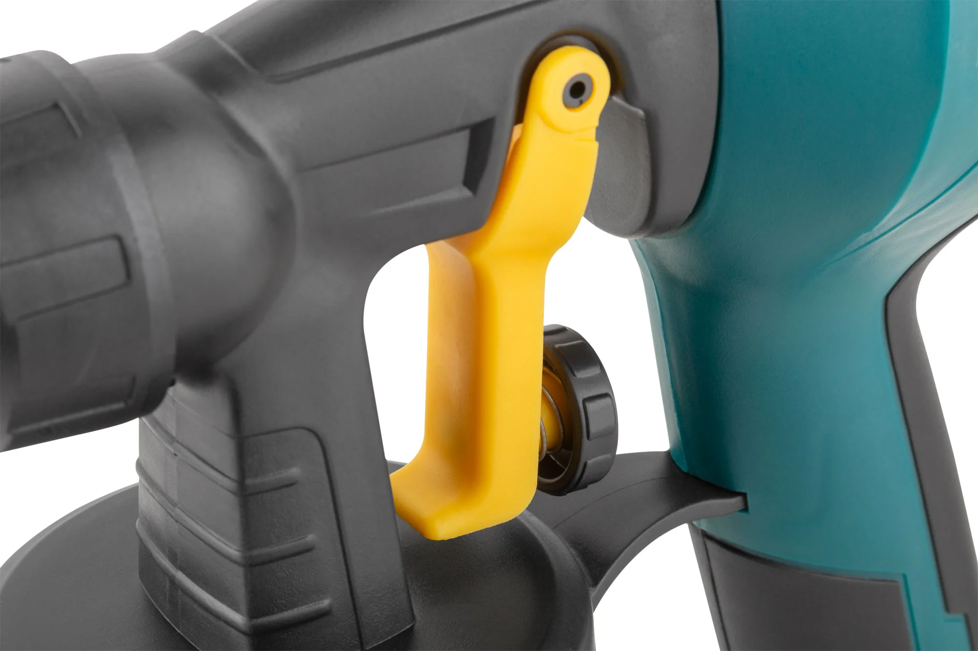 Устройство оснащено мощным 400-ваттным двигателем и системой HVLP, которая минимизирует потери материала и обеспечивает его равномерное распределение. Компактные размеры (290x120x285 мм) и легкий вес (1,12 кг) делают распылитель удобным в использовании и транспортировке.