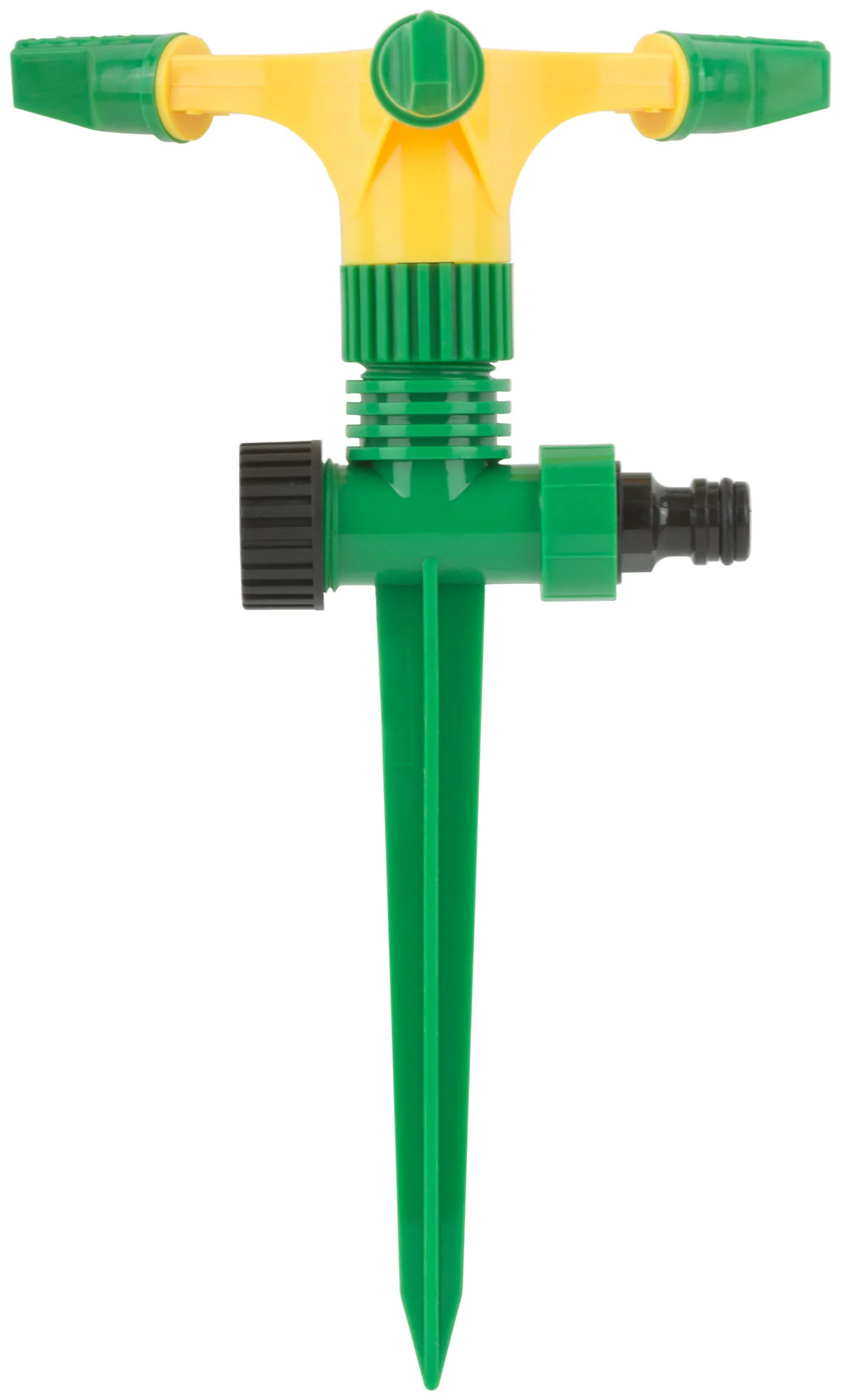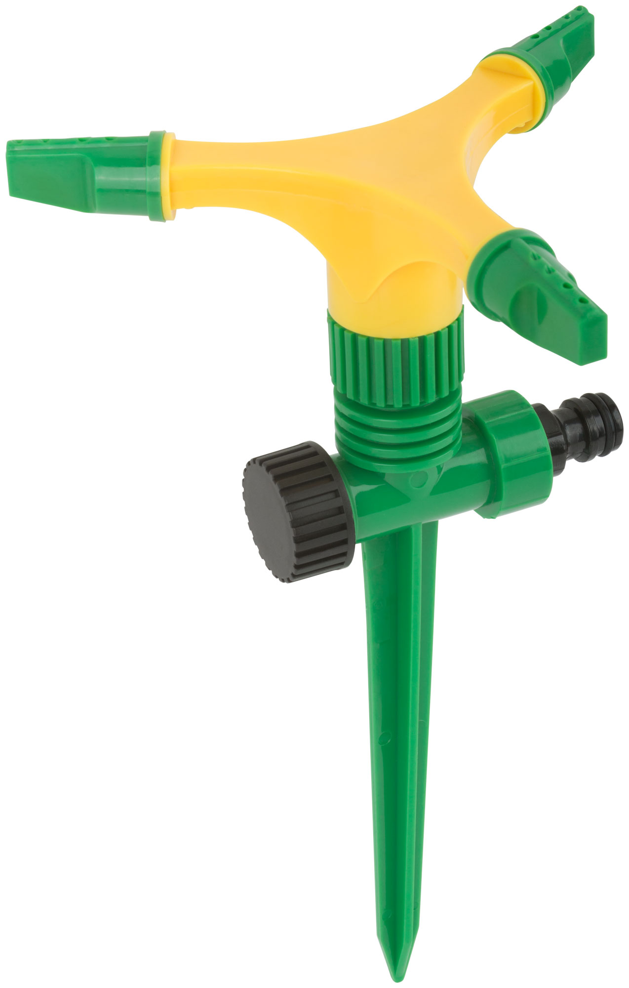 Распылитель изготовлен из прочного ABS пластика, что гарантирует длительный срок службы и надежность в эксплуатации. Благодаря трем соплам обеспечивается равномерное покрытие поливаемой площади. Универсальный соединитель позволяет легко подключать распылитель к любому стандартному шлангу.