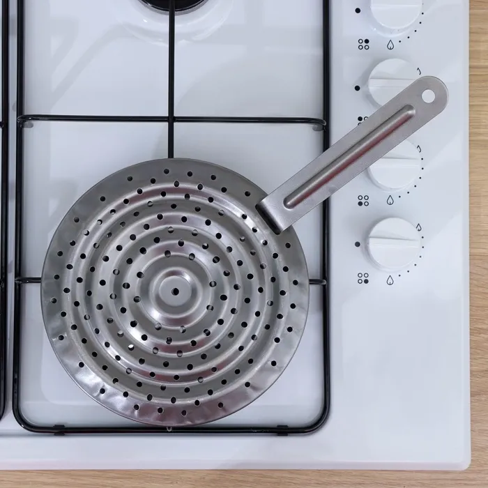 Рассекатель пламени со съёмной ручкой сочетает в себе функциональность и удобство. Он помогает готовить блюда равномерно и подходит для большинства газовых плит. Это практичное решение для тех, кто ценит качество и комфорт на кухне.