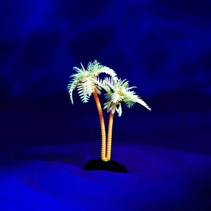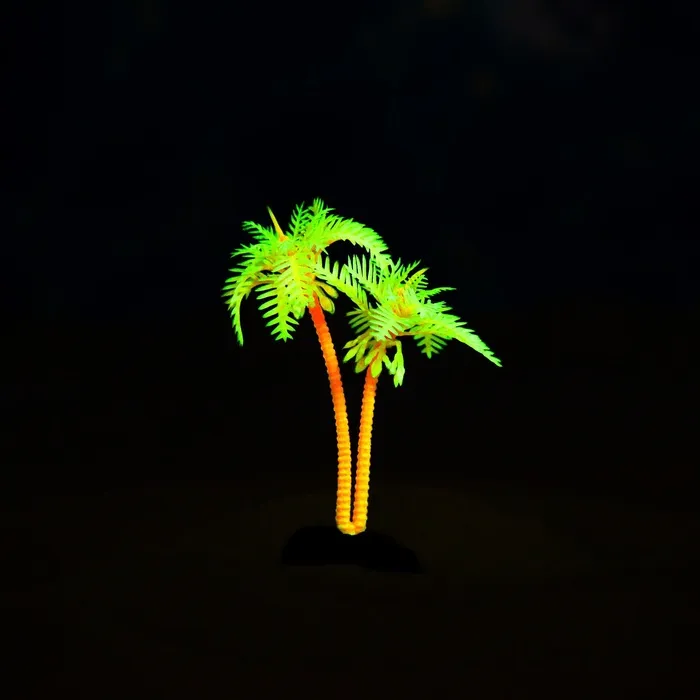 Растение искусственное аквариумное "Пальма", светящееся, 10 см, красное
