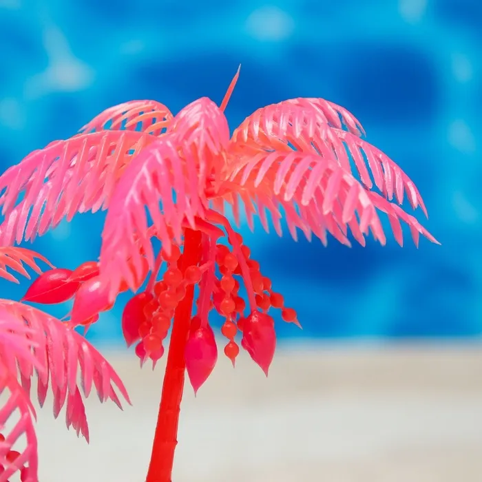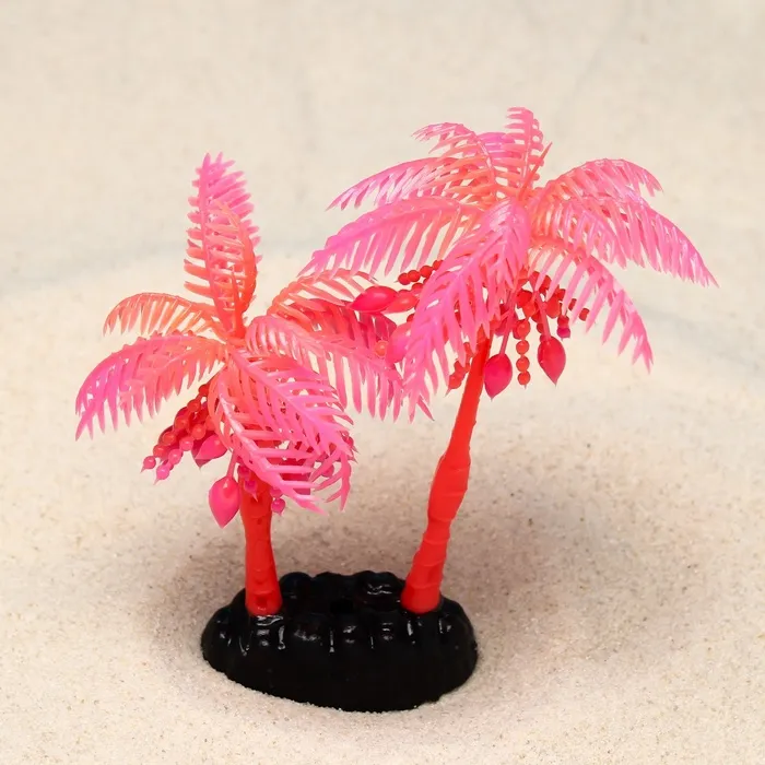 Растение искусственное аквариумное "Пальма", светящееся, 14 см, красное