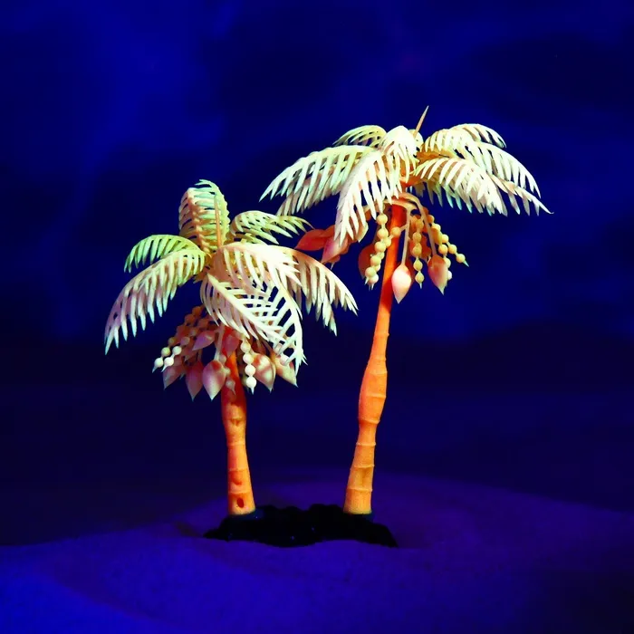 Растение искусственное аквариумное "Пальма", светящееся, 14 см, красное — Характеристики