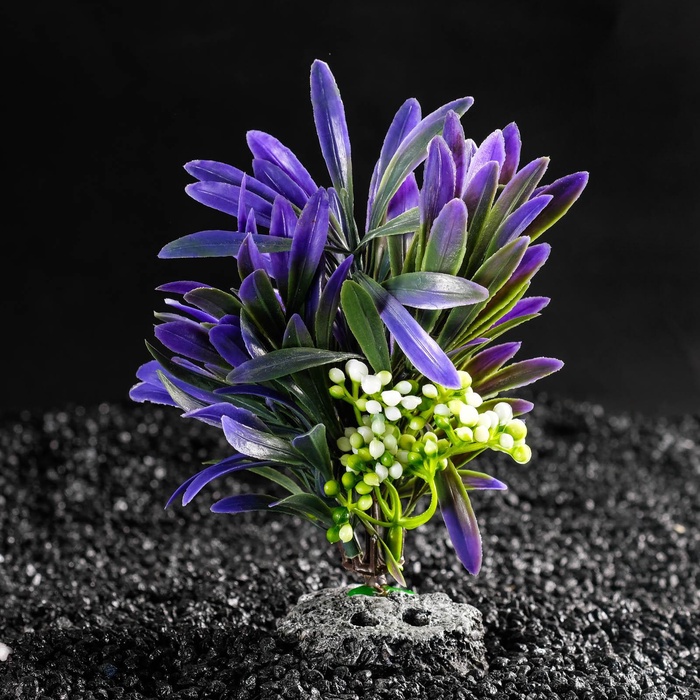 Растение выполнено в натуральных цветах, имитирующих настоящие листья и стволы. Детали прорисованы с высокой степенью реализма, что позволяет искусственной растительности гармонично вписываться в любое аквариумное оформление.
