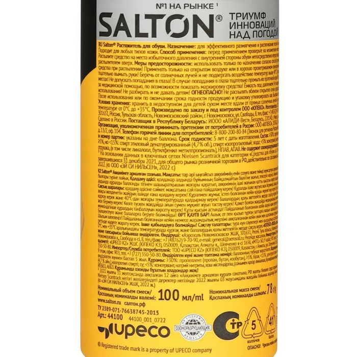 Средство от торговой марки Salton эффективно размягчит и откорректирует форму обуви из натуральной кожи.