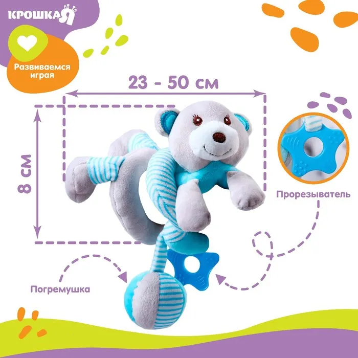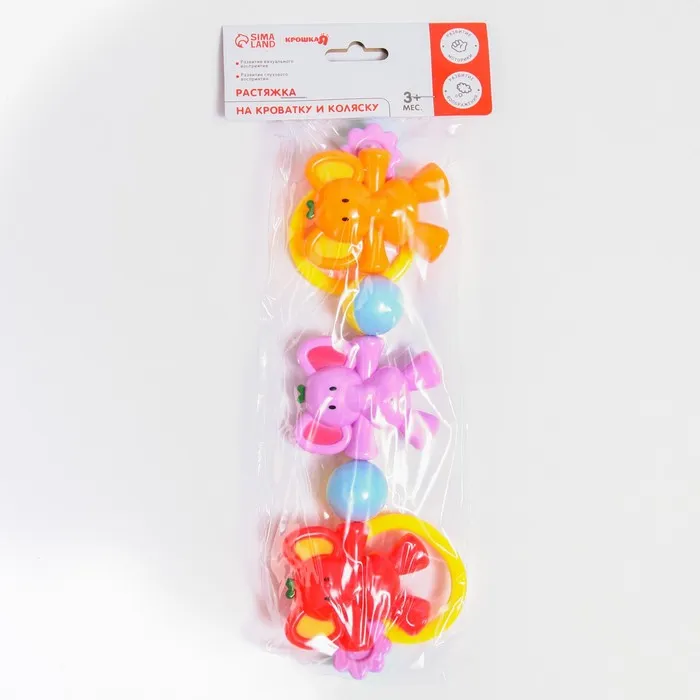 Растяжка на коляску/кроватку Крошка Я «Слоник», 3 игрушки с погремушками, МИКС — Характеристики