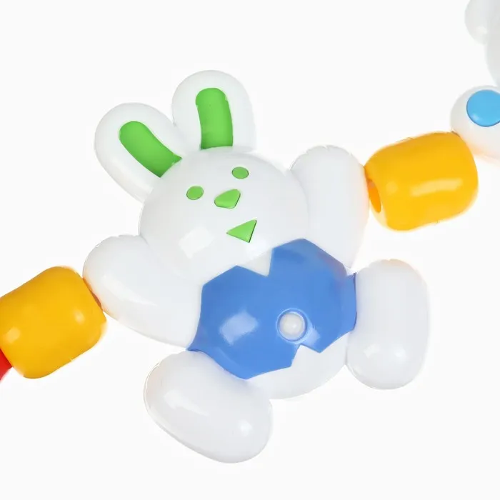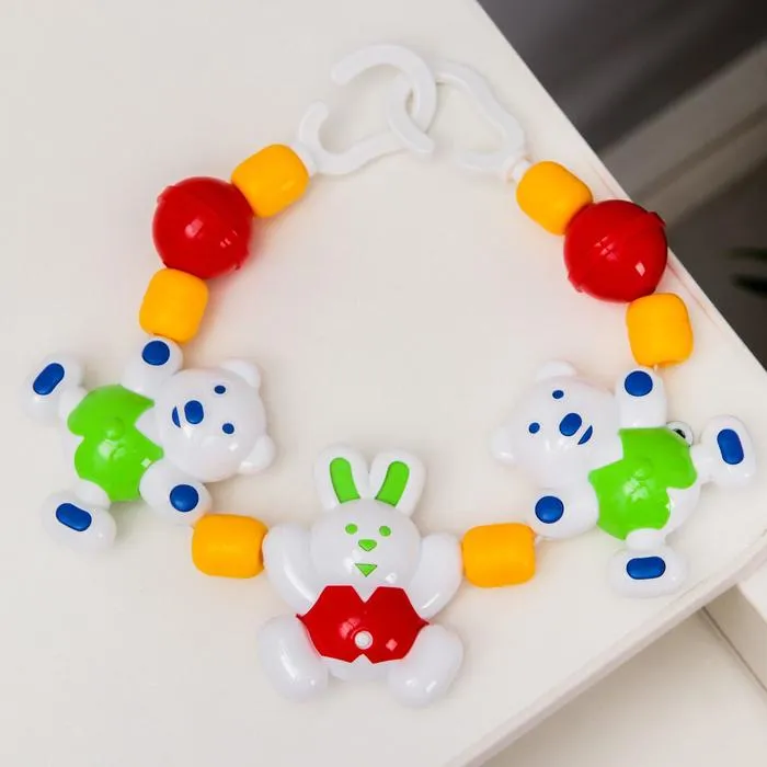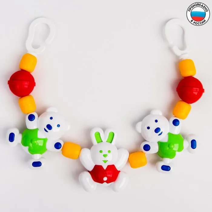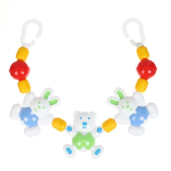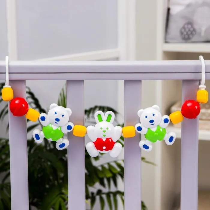 Погремушка-подвеска крепится на кроватку или коляску новорождённого. Игрушка успокоит и развеселит малыша дома и на прогулке. Кроха будет рассматривать яркий предмет и тянуться к привлекательным фигуркам.