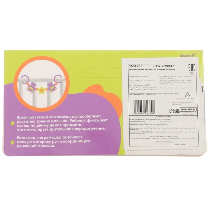 Растяжка на кроватку, коляску «Мишка, звезда, слоник», 3 игрушки, Крошка Я — Характеристики