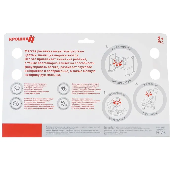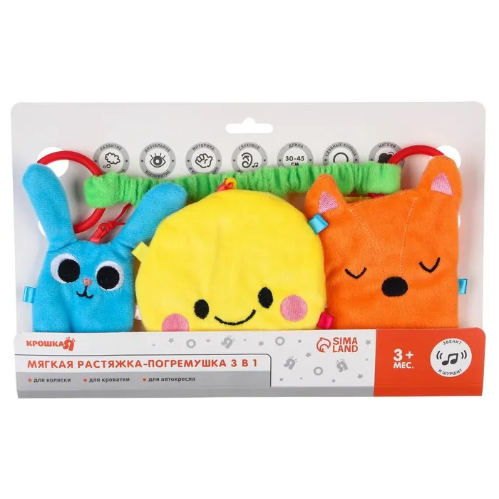 Растяжка - погремушка «Лучшие друзья» мягкая, на кроватку/коляску — Характеристики