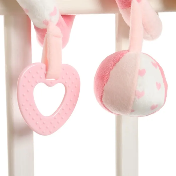 Мягкую и гибкую спиралевидную растяжку можно легко обмотать вокруг бортика кроватки, ручки автокресла, бампера коляски, разместить на шезлонг.