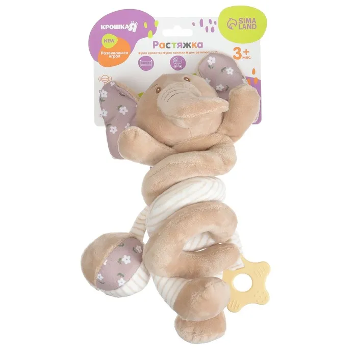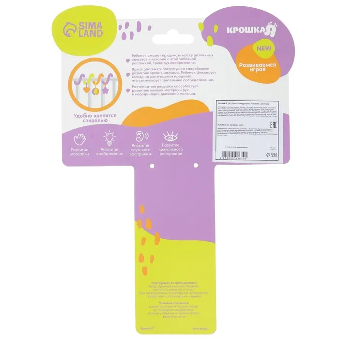 Звук в модели появляется при встряхивании. Причудливая форма надолго займёт внимание карапуза. Погремушку удобно использовать: лёгкая вещица подходит для захвата маленькими ладошками.
